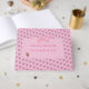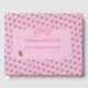 Personalized Cute Bear and Balloons design features a pattern of pastel coloured balloons as background to child's name and due date, which is displayed across centre of pattern, against a pink border. Reverse side features a single image of a lovable little bear as she clutches a bunch of balloons. Designed to coordinate with the "Cute Bear and Balloons Themed Baby Shower invitations, thank you cards, and accessories.