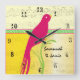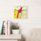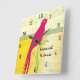 Personalized Cute Bird Yellow Pink and Green Square Wall Clock