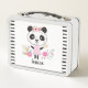 An adorable personalized black and white panda lunchbox for school. Personalize it with your name. Designed for you by blackberry Boulevard. www.blackberryboulevard.com