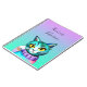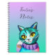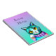 Add a name to this Teal, purple, pink and blue kitty cat with yellow eyes notebook.
