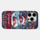 Protect your phone in festive style with the personalized “Cute Christmas Kawaii Fox Dot Mandala” phone case. This charming design features an adorable cartoon fox wearing a Santa hat, sitting on a snowy surface surrounded by an intricately detailed mandala border. The border is adorned with paisley and floral patterns in a vibrant red, white, and blue colour palette, accented with snowflakes and delicate ornaments to create a whimsical holiday aesthetic.