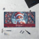 Elevate your workspace this holiday season with the personalized “Cute Christmas Kawaii Fox Dot Mandala” desk mat. This festive design features an adorable cartoon fox wearing a Santa hat, sitting on a snowy surface surrounded by an intricately detailed mandala border. The mandala is adorned with paisley and floral patterns in a vibrant red, white, and blue palette, accented with snowflakes and delicate ornaments for a whimsical and cheerful holiday aesthetic.