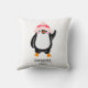 Personalized Cute Christmas Penguin in Red Hat Throw Pillow