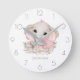 Cute elephant with pink heart modern and simple round clock. Beautiful detail in to a baby girl's nursery. Easily personalize the name. Matching items are available in my store - Kate Eden Art.
