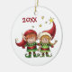 Personalized Cute Elf Couple Holiday Christmas Ceramic Ornament