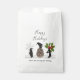 This design features three penguins among various symbols of the winter season: a snowflake, pine cone, and holly. The humourous animal illustration with personalized text makes cute funny and unique favour bags.