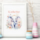 Baby nursery room art with a cute watercolor elephant surrounded by pink and coral flowers. Add name in the personalize area.