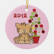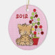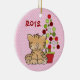 Personalized Cute Orange Cat, Holiday Tree on Pink Ceramic Ornament