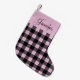 Personalized Cute Pink Buffalo Plaid Small Christmas Stocking