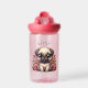 Cute chibi cartoon cozy little pug puppy dog sitting in pink flowers with a name that you can add in the personalize area.