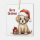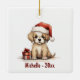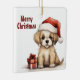 Personalized Cute Puppy with Santa Hat Christmas Ceramic Ornament