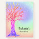 This pretty notebook is decorated with a tree and background in rainbow colours and sparkling stars.