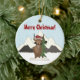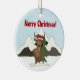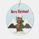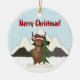 Personalized Cute Santa Deer and Mountains Merry Christmas Holiday Ornament.