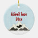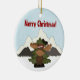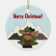 Personalized Cute Santa Moose and Mountains Merry Christmas Holiday Ornament.