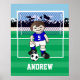 Personalized cute soccer boy in blue and white soccer kit uniform (colors can be customized on this product by contacting us via our store) Fully personalized with the name and number of your choice to create a unique soccer gift