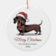 Personalized Dachshund in Santa Hat Christmas Ceramic Ornament