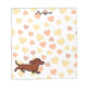 An adorable Dachshund puppy is running with twinkle eyes. Doxie memopad. You can customize text and more! Warm orange and yellow tiny hearts background. Whimsy and funny Dog Art created by Naomi Ochiai from Japan. Cute Dachshund cartoon design for dog lovers who love Dachshund!!