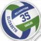This custom volleyball themed vinyl sticker features a dark blue, green and white volleyball upon which you can customize the player's name & jersey number plus team name in a varsity letter style font - by katz_d_zynes