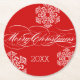 Personalized Dated Red Snowflake Merry Christmas Round Paper Coaster