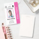 Easily personalize this modern blue style professional medical employee photo ID pink badge with your custom details.