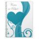 Teal Heart and Swirl Design Notebook with your name or subject added