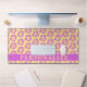 Personalized desk mat with Hawaiian flower pattern. Create custom desk mats for work space, computer table, counter, shop, store etc. Personalize with your own name, business name, text etc. Pink and yellow floral print. Modern template design with elegant typography. Background colour and text can be changed