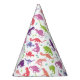 Kids Personalized Dinosaur Birthday Party Pattern Pink Purple Girls Paper Hats. Cute dinosaurs in watercolor with a background of dinosaurs. HAPPY BIRTHDAY and name written in curved font. www.SamAnnDesigns.com