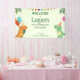 Set the tone for a wildly fun birthday celebration with this adorable dinosaur-themed welcome banner! Featuring friendly cartoon dinos in party hats, bright balloons, festive bunting, and jungle leaves, this standing banner makes a big prehistoric statement at the entrance of your child’s party.