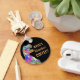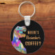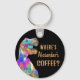 If you are T-Rex if you haven’t had your morning coffee then this is the keyring for you. Just add a name to personalize and you have the perfect prehistoric dinosaur keyring for the caffeine deprived. A funny painting of a grumpy, prehistoric Jurassic era Tyrannosaurus Rex dinosaur in psychedelic orange, yellow, pink, purple, blue and aqua green hues on a black background. The slogan template 'where's Alexander’s coffee' is easy to customize by adding a name. Original dino artwork by artist Catherine Sweetman