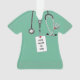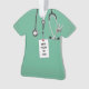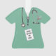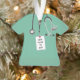 Doctor keepsake ornament featuring hospital scrubs stethoscope and Swiss army knife. To personalize edit text to add name and year.