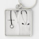 Unique doctor keepsake keychain featuring physician's lab coat and stethoscope. To personalize edit text to add name and medical credentials.
