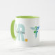 Personalized Doctor PhD Graduation Mug - Custom Two-Tone Dusty Green Coffee Cup with DR. & Family Name