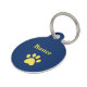 Personalized Dog paw print blue and yellow pet ID tag, with customizable yellow and blue lettering. Great for keeping track of your furry friend!