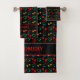 Fun, personalized DOG PAW PRINTS and LOVE HEARTS Bath Towel set with CUSTOMIZABLE TEXT, designed for your fur baby baths or for dog moms/dads. The design shows bright colourful paw prints with colourful hearts in a repeating pattern against a BLACK background. This background colour can be changed by clicking Edit Design and using the Zazzle Design Tool. This personalized paws and hearts Bath Towel Set would make an ideal Christmas or National Dog Week gift for pet bath times with a dog mom and dog dad or for a fur baby household.