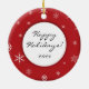 A keepsake and memorable holiday (Christmas/Hanukkah/Kwanzaa, etc.) gift for dog lovers features a red design with white snowflakes and a bone for the pet's name that can be moved, removed or resized if desired.