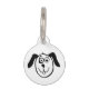 Personalized dog tag with cute cartoon design. Personalized name pet tag for lost doggy. Customizable coloured label with pet name and phone number. Simple way to retrieve your animal pet.