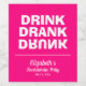 Personalized wine bottle labels feature the bachelorette's name and the words Drink Drank and the word Drunk upside down. Fun to serve at your bachelorette party or give as party favours. We show a hot pink background, but you can change it to any colour. MATCHING items in our store.