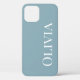 Dusty blue iPhone case with white modern typography name in white. A clean and simple design. Zazzle offers 100% customer service and satisfaction or your money back.