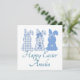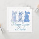 Three cute bunnies personalized "Happy Easter" . Three bunnies in polka dot, plaid and floral in blue and white will make it great for Easter gift.