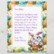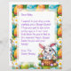 Add your child's name to this customizable letter from the Easter Bunny. Cute vintage Easter bunny in a basket with a cute Easter Eggs background. Back side of this letter is a colouring page for your child.