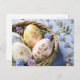 This delicate Easter card is decorated with beautiful painted eggs in a wicker basket surrounded by spring flowers on a watercolor background. The bright and cozy composition creates an atmosphere of warmth and joy. The card can be personalized by adding your congratulations or the recipient's name on the cover. A standard Easter wish is available inside, which can also be replaced with your unique inscription. Perfect for congratulating family and friends on the Easter holiday!