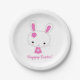 Personalized Easter paper plates with cute pink bunny and customizable text