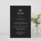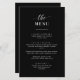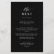 The personalized elegant black and white wedding menu is an ideal choice for couples hosting refined and timeless wedding celebrations. Its classic design complements formal black-tie events, traditional church weddings, elegant ballroom receptions, and modern minimalist affairs. The sophisticated monochrome colour scheme makes it perfect for evening weddings, winter celebrations, and upscale venues. Customizable with your wedding details and menu options, this elegant menu adds a polished touch to your table settings while enhancing the overall aesthetic of your event. It provides guests with a stylish way to enjoy the culinary offerings of your special day.