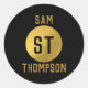 Personalized Elegant Black & Gold Modern Monogram Classic Round Sticker