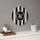 Personalized Elegant Black & Gold Stripes Monogram Large Clock