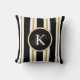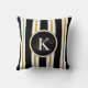 Personalized Elegant Black & Gold Stripes Monogram Throw Pillow