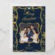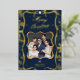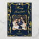 Celebrate the magic of the season with this sophisticated personalized Merry Christmas card featuring an elegant navy blue and shimmering gold design. The card showcases your photo beautifully framed in a glittering gold border, complete with festive embellishments, twinkling stars, and seasonal greenery details. The custom message "Merry Christmas" shines in luxurious gold calligraphy, making this card the perfect way to spread holiday cheer to loved ones. Add your family name and special photo for a one-of-a-kind keepsake that friends and family will treasure for years to come.