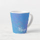This beautiful latte mug features a beautiful background art of swirling colours with an overall light blue tone. The swirling colours of this artwork is reminiscent of marbled paper. It also includes a place to add your name for a personalized mug.