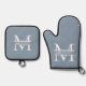 Personalized Elegant Dusty Blue Monogram and Name Oven Mitt & Pot Holder Set