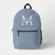 Personalized Elegant Dusty Blue Monogram and Name Printed Backpack